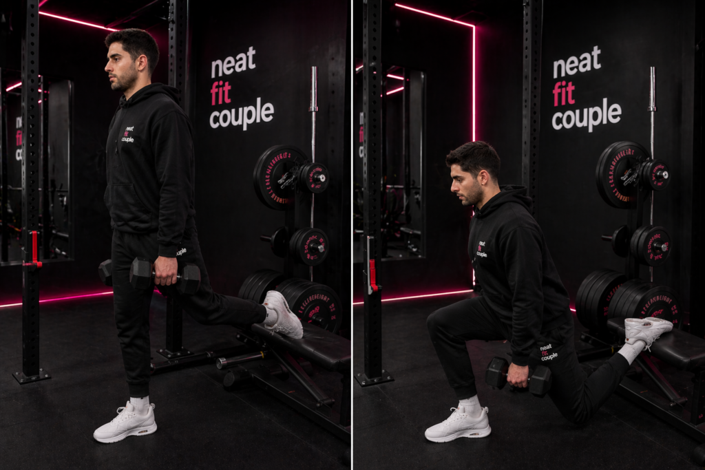 La sentadilla búlgara es una variante unilateral en la que la pierna trasera queda elevada sobre un banco o una superficie estable, mientras la pierna delantera realiza todo el trabajo. Es, junto al peso muerto a una pierna, uno de los ejercicios más eficaces para desarrollar fuerza, estabilidad y simetría en el tren inferior.